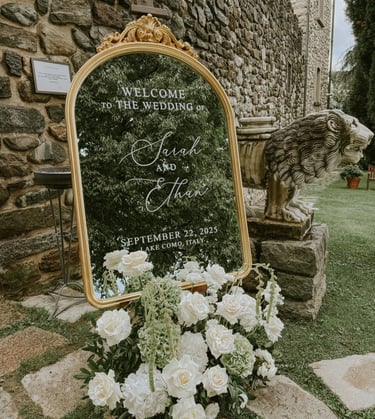 Ogni elemento grafico del giorno delle nozze contribuisce a creare un’esperienza armonica e riconoscibile. Dal welcome sign al seating plan, dai menu ai segnaposto, progettiamo una grafica coordinata che guida gli ospiti con naturalezza e valorizza gli spazi. Nulla è lasciato al caso: ogni dettaglio dialoga con l’allestimento, la location e lo stile dell’evento, rafforzando l’identità del vostro matrimonio.