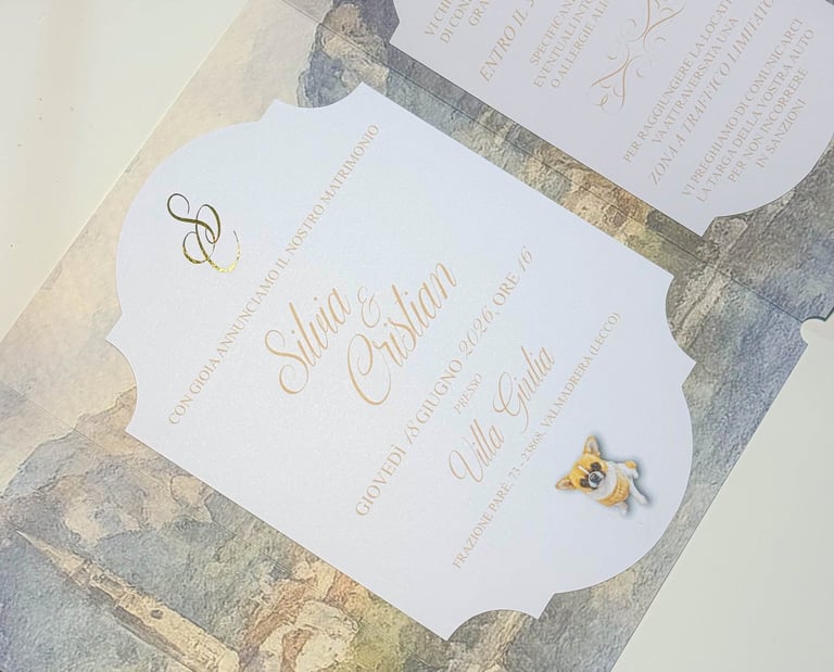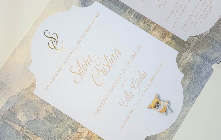 Una volta definito il progetto grafico, lo decliniamo su tutti i materiali necessari, adattandolo con cura a ogni supporto. Il filo conduttore rimane sempre lo stesso: nulla viene aggiunto o modificato senza una logica precisa. Questo approccio ci permette di garantire coerenza visiva, ordine e armonia, accompagnandovi fino al giorno del matrimonio con un sistema grafico solido e ben costruito.